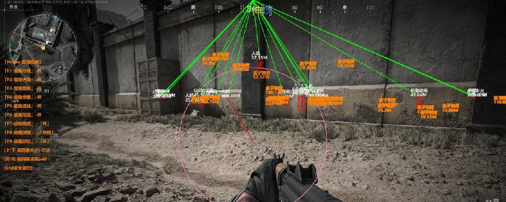 功能介绍: 自动瞄准-透视-带过机器-方框透视-血量-显示范围-人机显示-全面战